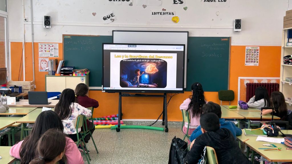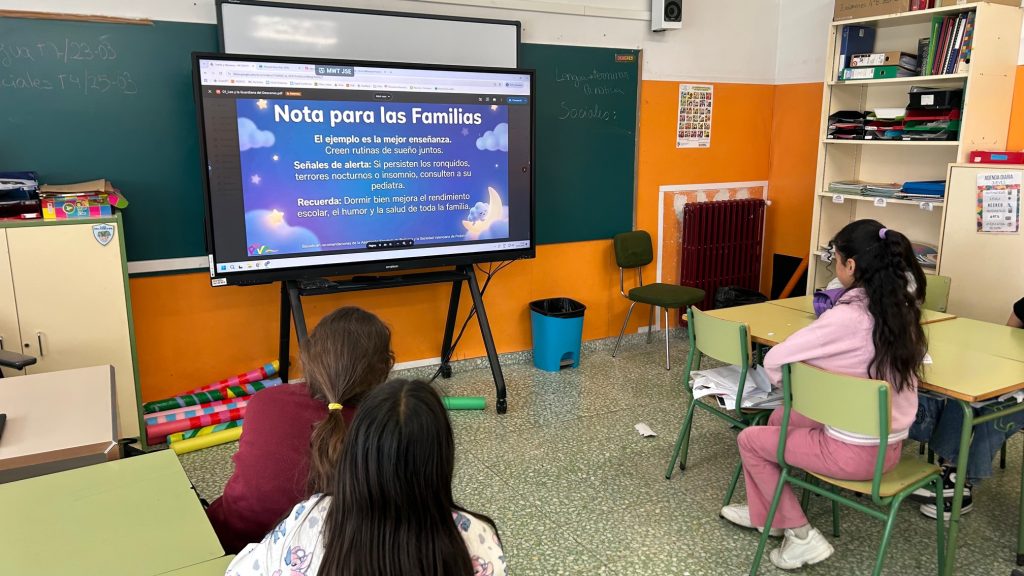 Por otra parte, el pasado viernes 13 de marzo, trabajaron la acción simbólica de la Higiene del sueño y del descanso. A partir del cuento de Leo y la Guardiana del sueño, trabajaron aspectos relacionados con la Higiene del sueño y su importancia para una vida saludable. Se realizaron dinámicas y conversaciones en las que el alumnado reflexionó sobre sus horas de sueño y la calidad de las mismas, sobre el uso de pantallas o sobre las rutinas que realizan antes de dormir. Fue muy productivo e interesante debatir con el alumnado y verles recapacitar sobre sus hábitos del sueño.