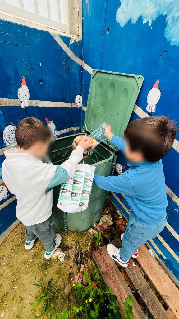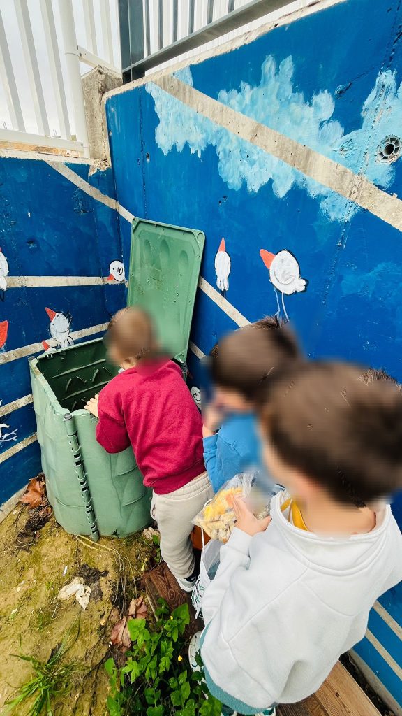 Están fabricando su propio compostaje que utilizarán, en un futuro, en el huerto y están muy orgullosos de ello.