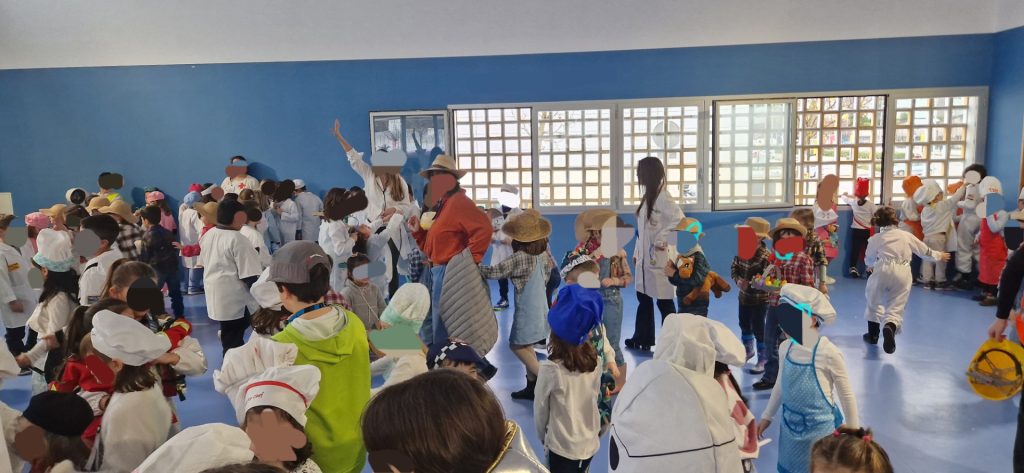 El día 13 se puso el broche final a esta semana tan divertida, todo el mundo con sus disfraces por cursos: pintores y pintoras, bomberos y bomberas, policías, granjeros y granjeras, personal sanitario, personal de la construcción y astronautas.