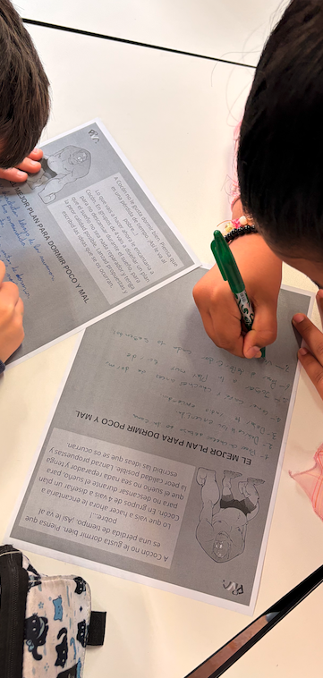 También han visto un par de vídeos adaptados a su edad sobre la higiene del sueño, que les han servido para reforzar contenidos y generar debate en clase sobre cuáles son las mejores rutinas y condiciones para dormir bien.